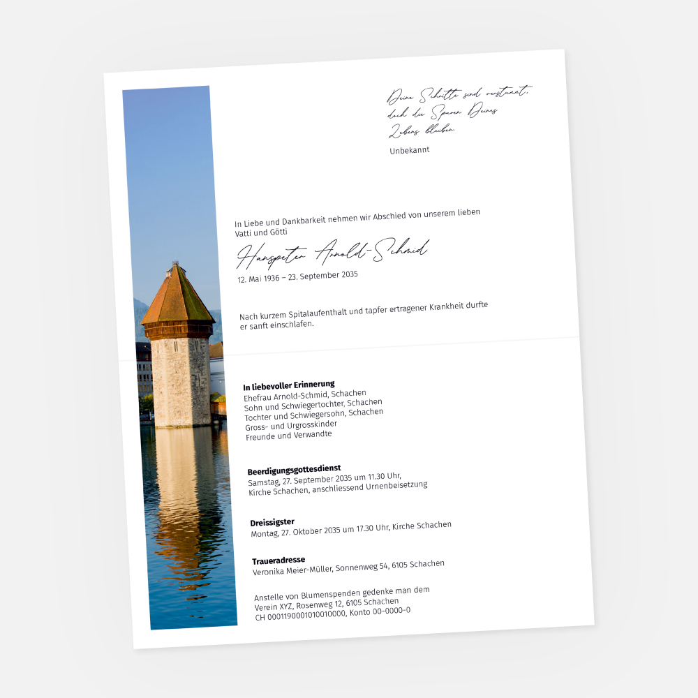 Trauerkarte Luzern Wasserturm
