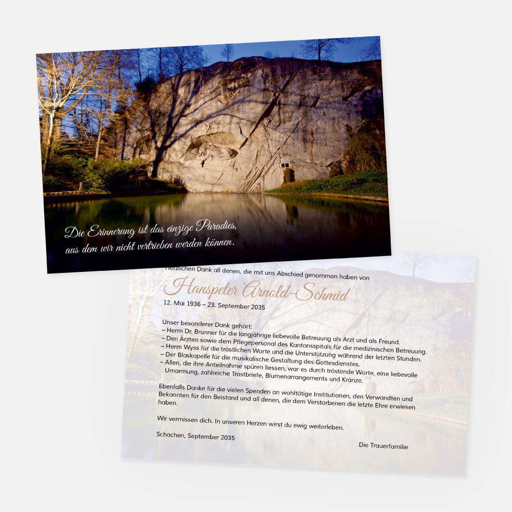 Trauerkarte Luzern Löwendenkmal