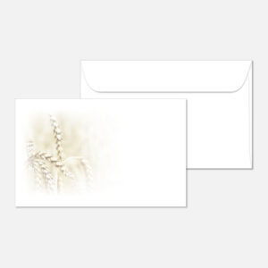 Weisses Kuvert mit dem Motiv «Korn» im Format 190 x 120 mm mit selbstklebender Lasche.